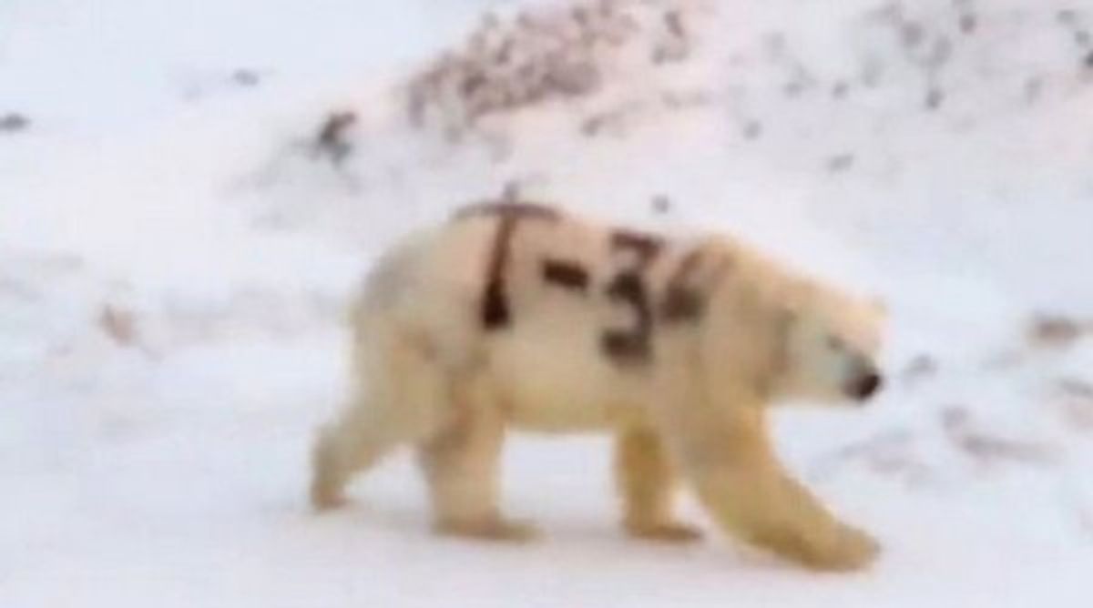 Rusya'da, üzerine siyah sprey boyayla 'T-34' yazılmış bir kutup ayısının görüntüleri, uzmanları endişelendirdi.