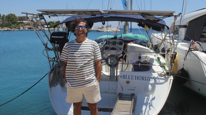 Dünya turunu Muğla'nın Datça ilçesinde tamamlayan 51 yaşındaki Fatih Aksu, yelkenlisini limana demirledi.