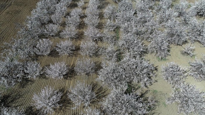 Malatya Ovası'nı beyaza bürüyen kayısı bahçelerinin arasında kalan yerleşim yerleri, açan kayısı çiçekleriyle adeta inci gerdanlıkla çevrelendi.