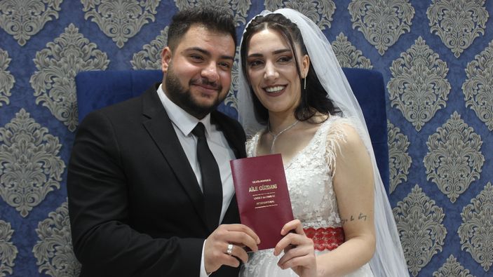 Atılan imzaların ardından Vali Yardımcısı Elif Canan Tuncer, evlilik cüzdanını teslim etti. Tuncer, çifte mutluluklar diledi. Daha sonra aileler çiftle fotoğraf çekildi.