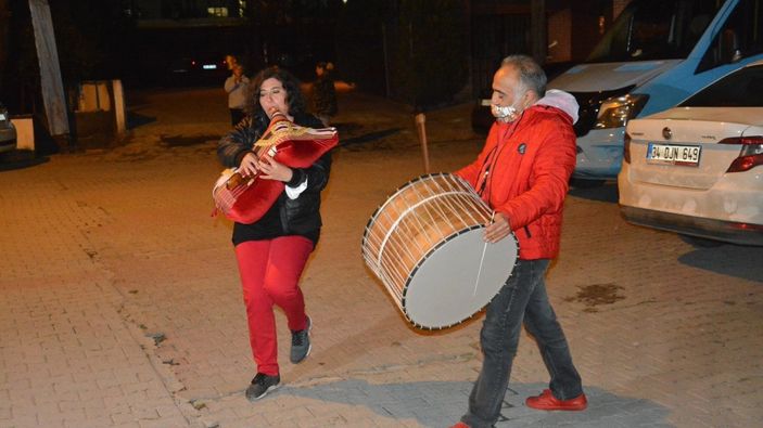 Filiz İlkay ve Erhan Zaza, mahalle sakinlerini sahura uyandırmak için tulum çaldı. Mahalle sakinleri, tulum sesine alkışlarla eşlik etti.