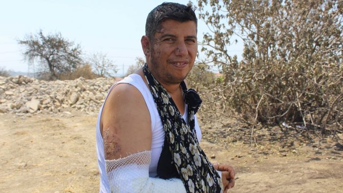 Okudan, kapının önünde bulunan traktöre doğru hareket ederken, hem karşısından hem de arkasından gelen alevlerden kaçmaya çalıştı, vücudunun sağ kısmında yanıklar oluştu.