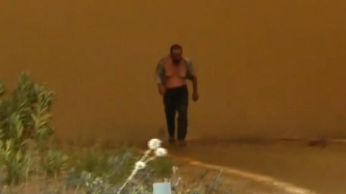 Marmaris'te alevlerin ortasından çıkan vatandaş VİDEO