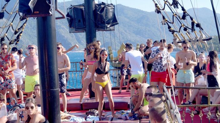 'Korsan gemileri' konseptiyle tasarlanan günlük tur tekneleri ile mavi sulara açılan turistler, çalan hareketli müzikler eşliğinde dans etti, çeşitli etkinliklerle keyif dolu anlar yaşadı.