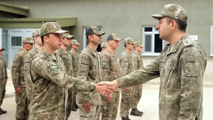 Ramazan Bayramı'nı komutanları ve silah arkadaşlarıyla geçiren askerler, Bölük Komutanı Piyade Üsteğmen Yasin Soysal komutasında bir araya gelerek bayramlaştı.