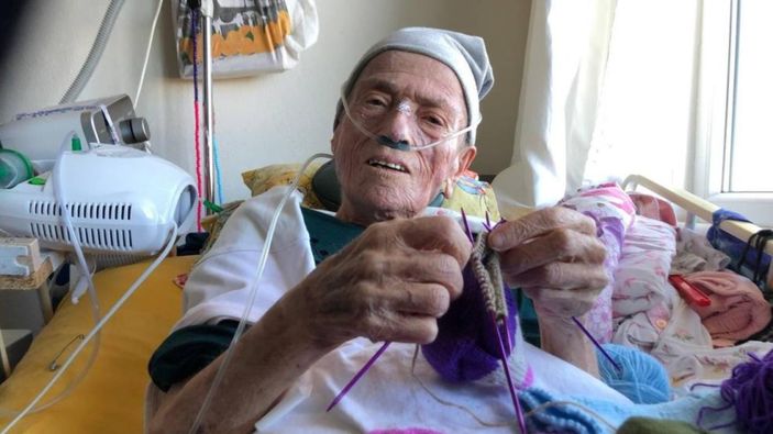 Akömür, hastalığına aldırış etmeden Kahraman Mehmetçik'e destekte bulunmak adına yatağından çorap örerek göndermişti.