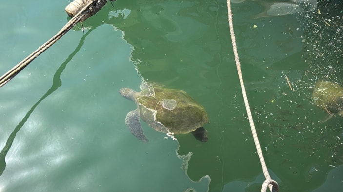Mersin'de, balıkçı barınağında yıllardır insanlar tarafından beslenen deniz kaplumbağalarının doğal yaşam alanlarına dönmesi için bilinçlendirme çalışmaları yapılıyor.