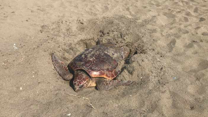Mersin’de yumurtasını gündüz vakti bırakan caretta caretta