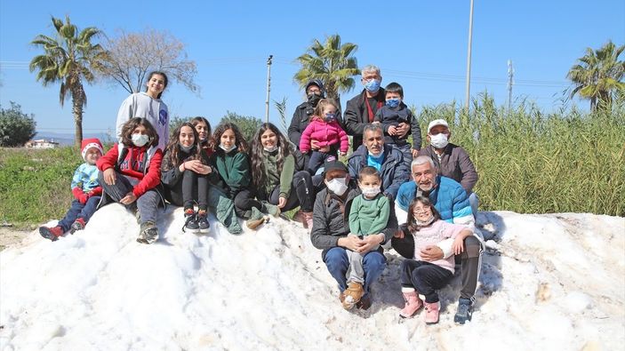 Mezitli ilçesinde, kentin yüksek kesimlerinden kamyonlarla getirilen kar, çocukların eğlencesi oldu.