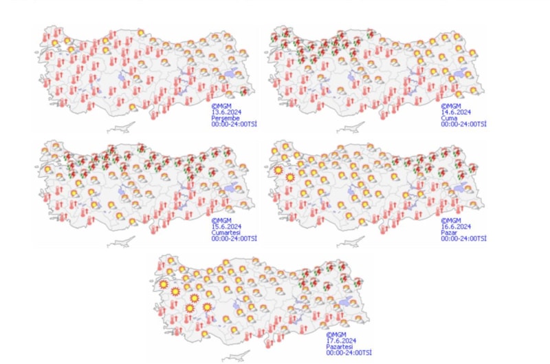 Parçalı ve az bulutlu, öğleden sonra ve akşam saatlerinde Hakkâri çevreleri ile Van’ın doğu kesimlerinin kısa süreli ve yerel sağanak ve gök gürültülü sağanak yağışlı geçeceği tahmin ediliyor.
