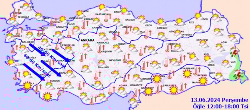 Az bulutlu ve açık, iç kesimlerinin yer yer parçalı bulutlu geçeceği tahmin ediliyor. Rüzgârın, Göller Yöresinde batı ve kuzeybatıdan kuvvetli (40-60 km/sa) esmesi bekleniyor.