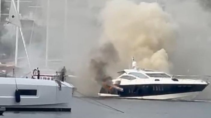 Saat 17.00 sıralarında Bodrum merkezdeki bir marinada meydana gelen olayda, marinada demirli motoryat, bilinmeyen nedenle alev aldı.