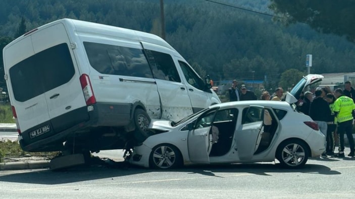 Muğla Ula'da ilginç kaza: Otomobil minibüsün altına girdi