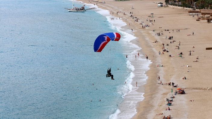 Babadağ'dan yamaç paraşütüyle atlayan bazı kişiler de Ölüdeniz'in eşsiz manzarasını havadan izleme imkanı buldu.