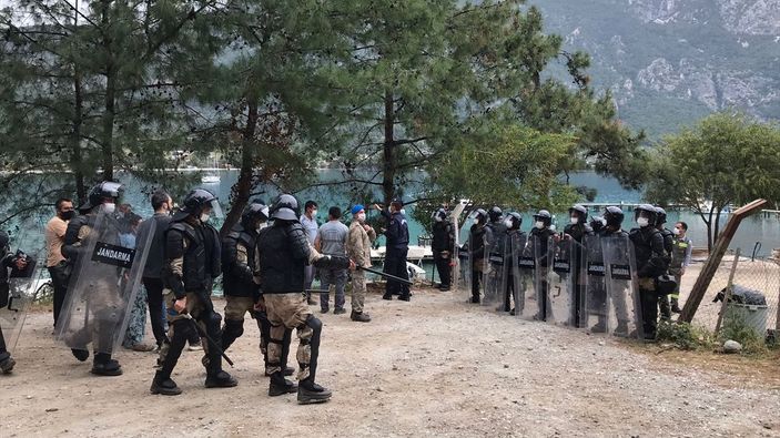 Muğla'da kaçak yapıların yıkımı sırasında arbede çıktı