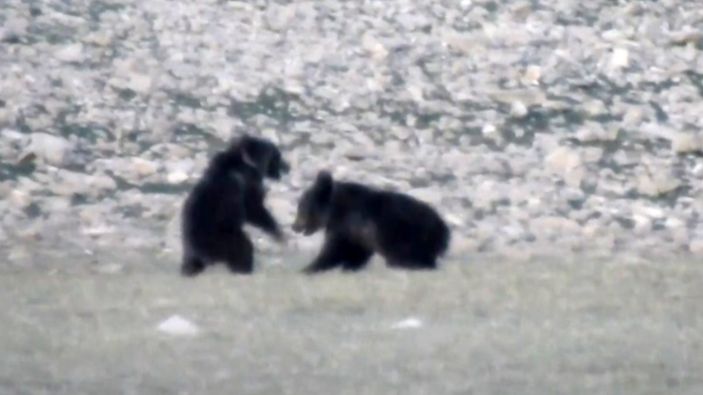 Yaklaşık 10 dakika güreşip oyun oynayan yavru ayılar daha sonra annelerinin yanına koştu.