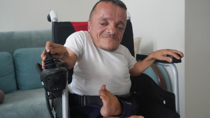 Türkiye'nin en kısa boylu engelli bestecisi olan Aladdin Diğer, uzun süredir beklediği akülü tekerlekli sandalyesine kavuştu.