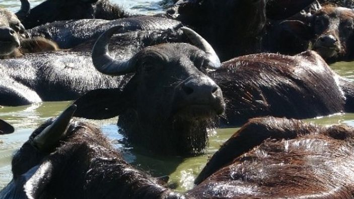Çiftçilik ve hayvancılıkla geçimlerini sağlayan Ahmet Özdemir, Azıklı, Karakütük ve Umurca köylerinde ağırlıklı olarak manda yetiştiriciliği yapıldığını aktararak, “Mandalarımız öğle 12.00 gibi suya giriyor, aşağı yukarı iki saat suda kalıyor. Havalar çok sıcak. Akşam da 17.00’de bir saat suyun içerisine bırakıyoruz. Daha sonra hayvanları otlatıp köye götürüyoruz. Havalar sıcak olduğu için hayvanlar bunalıyor, su olmazsa dayanamıyorlar. Onun için bol bol suyla bunları yıkayıp, dinlendirip ahırlara yerleştiriyoruz. Bu bölgenin geçim kaynağı hayvancılıktır. Başka bir işimiz olmadığı için geçimimizi hayvancılıkla sağlıyoruz.” ifadelerini kullandı.