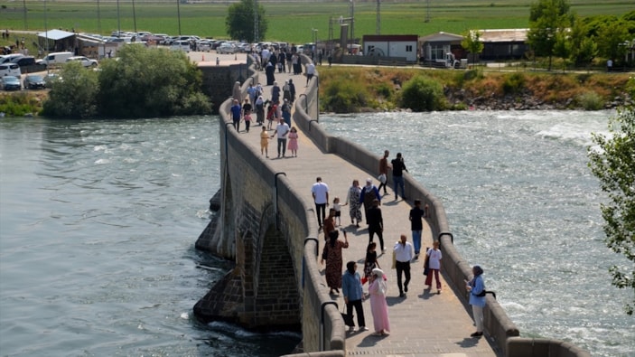 Kent merkezine 13 kilometre uzaklıkta bulunan köprüye, bayram tatili dolayısıyla çevre illerden gelen ziyaretçiler ilgi gösteriyor.