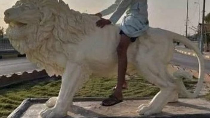 Irak’ta sosyal medyada alay konusu olan aslan heykeli, gündemdeki yerini koruyor.