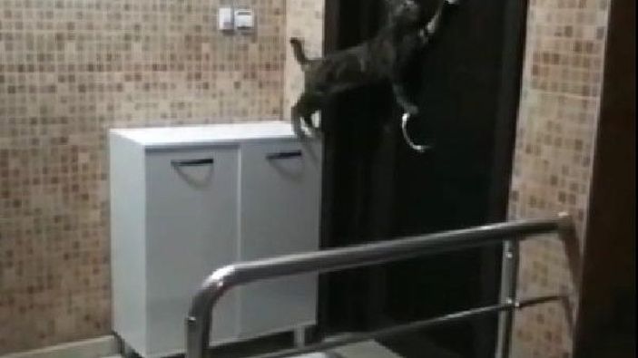 Niğde'de kedi, tokmakla kapıya vurarak açılmasını bekledi VİDEO