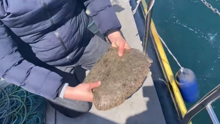 Öte yandan, İl Tarım ve Orman Müdürlüğü Su Ürünleri Kontrol görevlileri, yasaklı tarihlerde denize serilen balıkçı ağlarından kurtardıkları kalkan balıklarından birini, "Yolun açık olsun dostum" diyerek, suya geri saldı.