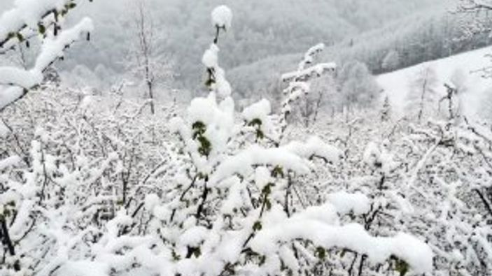 Devam eden kar yağışıyla fındık bahçeleri ve meyve ağaçları karla kaplandı. Çiftçiler, fındığın zarar görebileceği endişesi taşıyor.