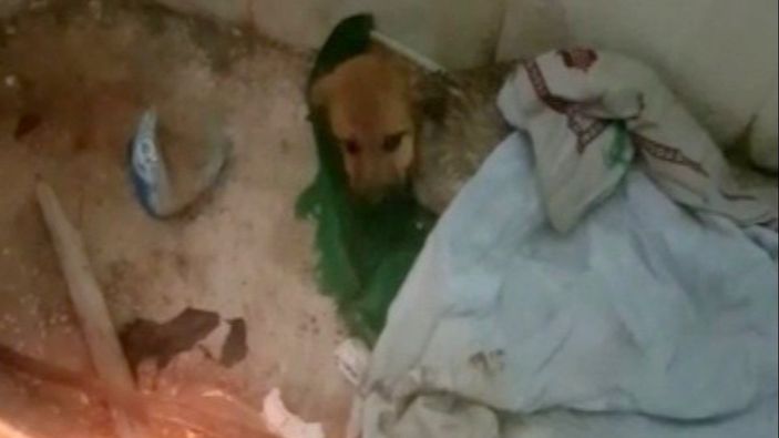 Kapalı bir alana getirdiği köpeği hayatta tutmaya çalışan personel, yaktığı ateşle köpeği ısıtmaya çalıştı. Görüntülerde köpeğin haline üzülen personelin bu davranışı insanlık ölmemiş dedirtti.