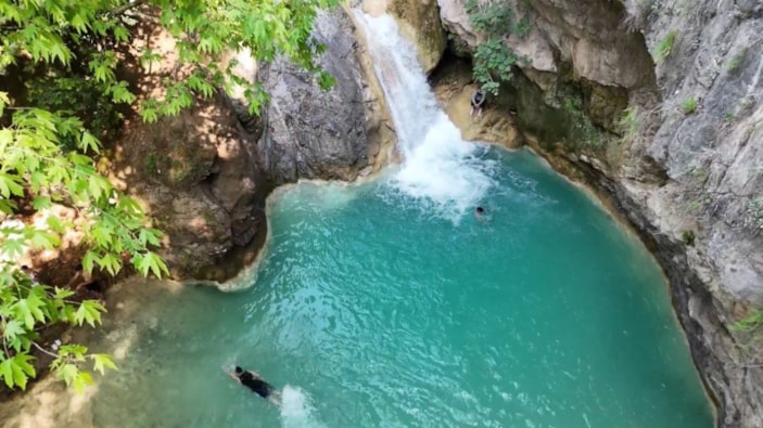 Yüksek sıcaklıkların hissedildiği Osmaniye'de vatandaşlar sıcağa karşı çeşitli yöntemler buluyor. Sıcaktan bunalan vatandaşlar serinliği Sarısu Şelalesi'nde buluyor.