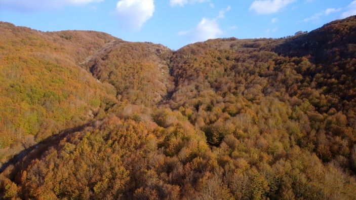 İHA'nın haberine göre, doğasever vatandaşlar ve amatör fotoğrafçıların da sıkça ziyaret ettiği yayladaki sonbahar güzellikleri, drone ile havadan görüntülendi.