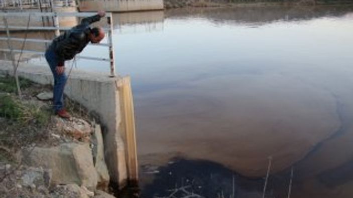 HES göletinde görülen zift ve yanmış yağ, suyun üzerini kaplamış durumda.