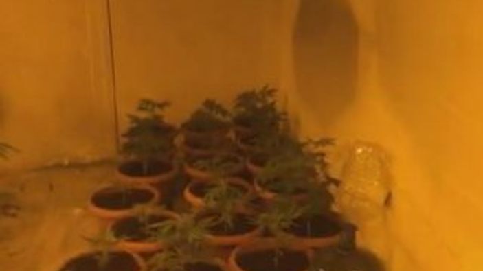 Aramalarda 96 adet saksılara dikili büyük kök Hint keneviri, 19 adet saksılara dikili küçük kök Hint keneviri, 5 kilo 135 gram Hint keneviri, uyuşturucu üretiminde kullanılan aydınlatma ve havalandırma cihazları, ışıkölçer ele geçirildi.
