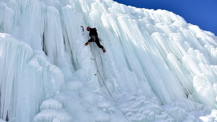 Erzurum'daki Palandöken Kayak Merkezi'nde, Türkiye'nin yanı sıra 5 ülkeden çok sayıda sporcunun katılımıyla 3'üncüsü düzenlenen buz tırmanışı festivali başladı.