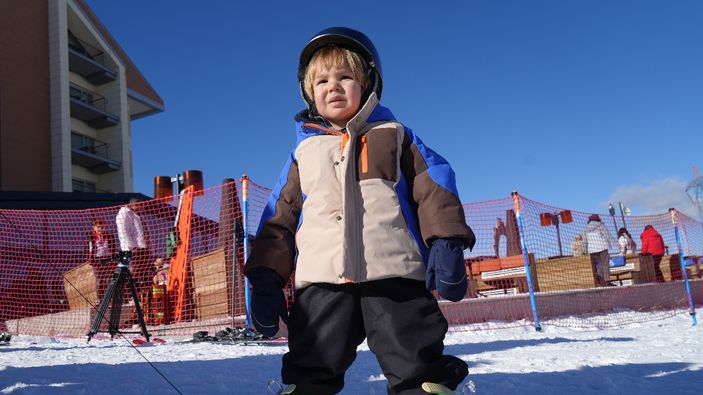 Palandöken'de kayak sezonu açılırken, dağda yeterli kar olmamasına rağmen yapay karlı pistler de hafta sonu kayakseverleri misafir etti.