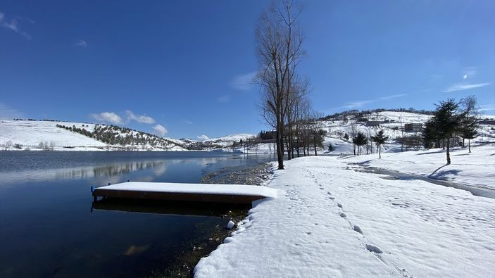 Ziyaretçilerini manzarasıyla büyüleyen yayladaki menderesler beyaz örtüyle kaplandı.