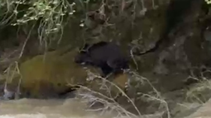 Çamlıhemşin ilçesinde Fırtına Deresi'ne düşen domuz akıntıda mücadele verdi. Vatandaşlar ise bağırarak domuzu kurtarmaya çalıştı. O anlar cep telefonu kamerasına yansıdı.