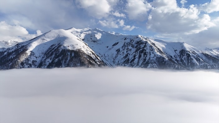 Beyaza bürünen Kaçkar Dağları'nın eteğindeki "sis denizi" görenleri kendisine hayran bırakan olağanüstü görüntüler oluşturdu.