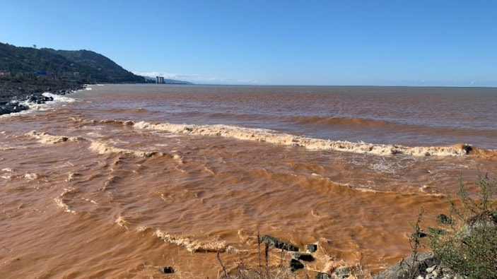 Rize'de sağanak yağmurdan sonra denizin rengi değişti