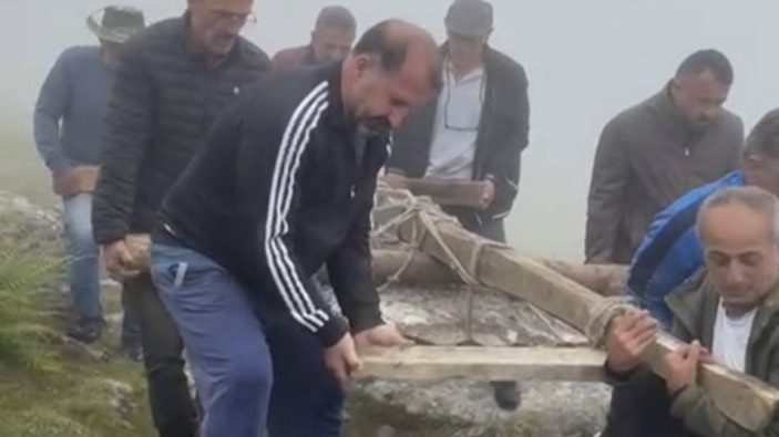 Rize'de yayladaki 600 kilogram ağırlığındaki taşı elleri ile böyle taşıdılar