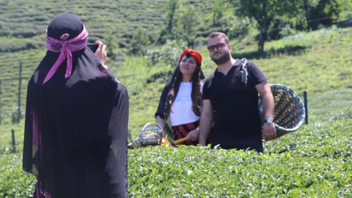Sosyal medyadaki paylaşımlar ile meşhur hale gelen Rize’nin Çayeli ilçesinde çay bahçesi, yerli ve yabancı turistlerin uğrak mekanı olurken şehre gelen turistler, bu bahçede yerel kıyafetlerle fotoğraf çektirmeden ayrılmıyor.