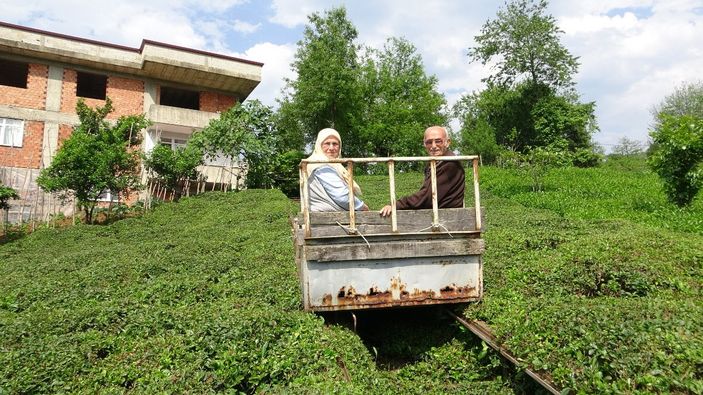 Çiftin komşusu Yaşar Güveli de "Bana çok ilginç geldi. Bizim havadan giden varangel dediğimiz teleferiklerin buda yerden gideni. Ben de bazen çay taşımak için kullanıyorum" ifadesini kullandı.
