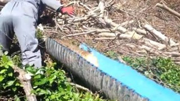 Oluşturduğu kaydırağın üst kısmından odunu koyan Karaoğlu, böylelikle rahatlıkla odunun aşağıya inmesini sağlamış oldu. Kurduğu bu sistem ile insan gücü kullanılmadan arazinin içerisinde kalan odunların, arazinin dışarısına kolayca çıkarılması sağlandı.