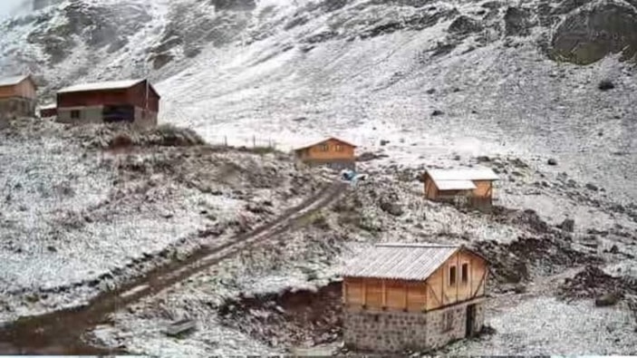 Rize'nin Çamlıhemşin ilçesi Yukarı Kavrun Yaylası, Varyemez Yaylası ve Kaçkar Dağı'nın zirvesine mevsimin ilk karı yağdı.