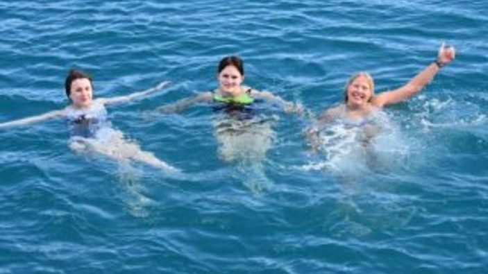 Yat; doğal bir liman olan Gökkaya Koyu'nda mola verdiği sırada bazı turistler, 13 derece hava sıcaklığında, 17 derece olan Akdeniz'e girerek, yüzdü. Kendi ülkelerinde gündüz bile eksi 10 dereceyi bulan sıcaklığın hakim olduğu turistler, Demre'de yatın üstünden denize atladı.