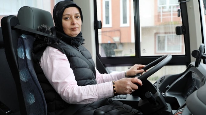 Sakarya’da bulunan özel bir fabrikada personel servis şoförlüğü yapan 44 yaşındaki Sevim Çam, ilgi çekiyor.