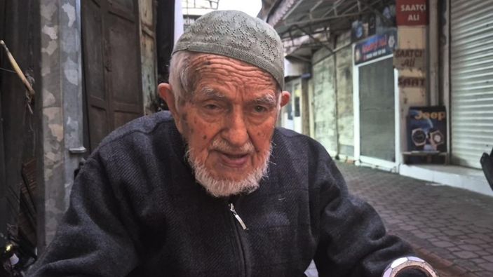 Samsun'da 96 yaşındaki esnaftan gençlere sigara uyarısı
