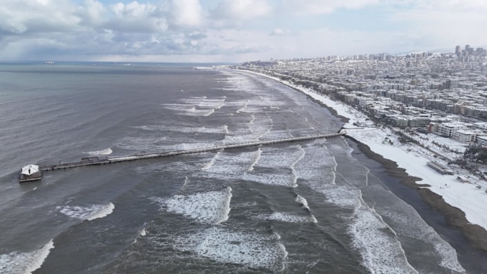 Atakum ilçesinde etkili olan kar sonrası sahilde kartpostallık görüntüler ortaya çıktı.