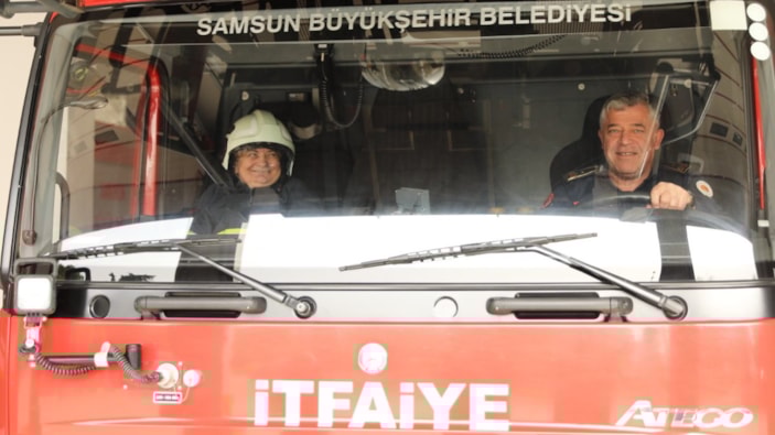 Samsun'da yaşlı kadın bir günlüğüne itfaiyeci oldu