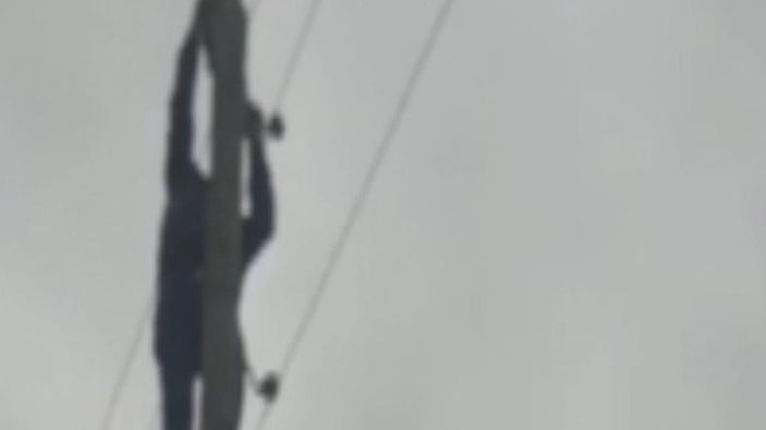 Şanlıurfa'da direkte mahsur kalan kediyi, muhtar kurtardı