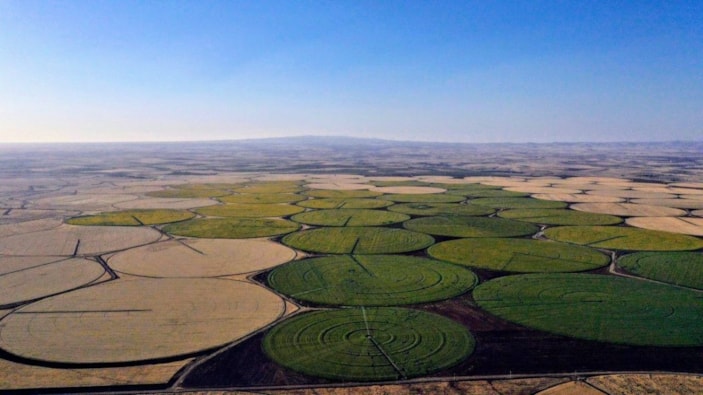 Türkiye'nin tahıl ambarı olarak adlandırılan kenti Şanlıurfa'da ayçiçeğinin çiçek açmasıyla birlikte araziler sarıya boyadı.